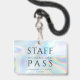 Custom Holographic Staff All Access Pass Event Badge that you can easily customize. Perfect for any event and corporate events. Completely repurpose this design template for other special occasions in your life by clicking the "Edit using Design Tool" nested under the "Personalize" button to change the background colour, fonts, and layout