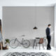 A modern grey wallpaper with a linen look texture for a home office.