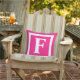 Modern Hot Pink And White Monogram Initial Outdoor Pillow
