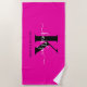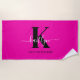 Modern Hot Pink Black Script Monogram Beach Towel