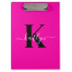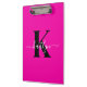 Modern Hot Pink Black Script Monogram Clipboard