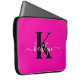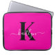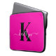 Modern Hot Pink Black Script Monogram Laptop Sleeve