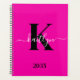 Modern Hot Pink Black Script Monogram Planner