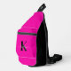Modern Hot Pink Black Script Monogram Sling Bag