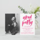 Invite guests to celebrate the grad with our photo graduation party invites! The modern graduation party invitations feature the graduate's vertical photo. "Grad Party" is displayed in a hot pink painted brush font. Personalize the front of the invite by adding the graduate's name, school name, graduation year, and graduation party details. The invite reverses to display your graduation party details with a hot pink and white brush stroke background.