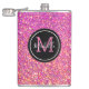Modern Hot Pink Glitter Monogrammed Personalized Hip Flask
