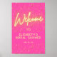 Modern Hot Pink Neon Glow Gold Glitter Welcome Poster