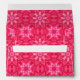 This hot pink tile patterned envelope is printed inside and out with a modern kaleidoscope print and has a customizable return address printed on the outer flap on the back. The front has a plain teal area to write the recipient's address on.