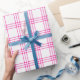 A wrapping paper designed with a modern hot pink plaid pattern on white in large size. Customize the white background among other options.