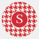 Modern Houndstooth Cherry Red & White Monogram Classic Round Sticker