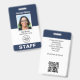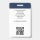 Create a professional appearance with a branded staff ID badge. This editable template can be personalized with your profile photo, name, job title, employee number, and company logo. Return details are on the back, along with additional information, and a QR code. Perfect for creating a cohesive branding experience, or simply to verify the identity of the wearer and display their qualifications. This identification badge is ideal for customer-facing roles and corporate settings — from business consultants and retail stores to medical professionals, hospital staff, office workers, conference teams, corporate events and more. Custom badges build brand identity and enhance security. Printed colours: very dark navy blue, grey and white. Vertical format.