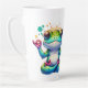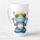 Inhale Peace, Exhale Hop-Piness funny, cute frog is practicing meditation and reflecting on the importance of just breathing. Colourful in green and pink, on a latte mug.