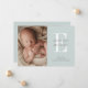 Modern Initial Blue Green Baby Three Photo Birth Announcement