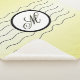 Large, luxurious 60" x 80" sherpa blanket in a beautiful butter yellow ombré fading from darker yellow on the top and bottom to a pretty muted yellow in the centre. This blanket features simple, abstract, black lines to accent the modern black and white circle which showcases your family / surname initial in black calligraphy text with a subtle matching yellow drop text.