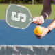 This fabulous modern initial pickleball paddle in sage green with your first initial in a super trendy white font and a heart shaped pickleball is perfect for you or a loved one who is crazy about pickleball. It's simple. It's bold. It's perfect!
