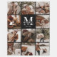 Modern Instagram Photo Collage | Black Monogram Fleece Blanket