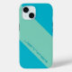 This modern case for the iPhone 15 is Blue with one diagonal thick Green stripe. Text is on the diagonal in the green stripe. Simple but eye-catching! Easy to personalize, or delete example text. All Rights Reserved © 2024 Alan & Marcia Socolik.