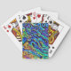 This deck of cards has a striking iridescent abalone seashell pattern. There are swirls of shades of dark blue through to light blue and green, and also shades of yellow orange. It reminds me of fire and ice! No matter what it reminds you of, it's definitely a very striking design and will be fun to play cards with.