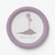 Plates featuring an illustration of two palm trees on an island. Personalize with your names. Design is violet. Look for matching wedding invitations and more at Jill's Paperie.