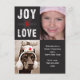 Black and White Modern Joy & Love Christmas Holiday Photo Postcard.