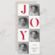 "Spread holiday cheer with this modern ‘JOY’ photo Christmas card, featuring bold red typography paired with black-and-white family photos. The clean collage layout and personalized message make it a stylish yet heartfelt way to share your love this season. Perfect for families, couples, and anyone wanting a festive holiday card with a modern twist."