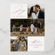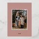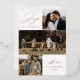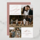 Modern holiday card featuring the phrase "Joy to the World" in elegant rose gold foil script with a white background. The front of the design features 3 of your favourite family photos arranged in a collage-style layout. Personalize the front of the multi-photo holiday card with your family name and the year. The card reverses to display an additional photo with a dusty rose background.