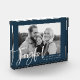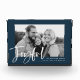 Display your photo in a unique and stylish way with our Joyful Script holiday photo block. The acrylic photo block features your photo framed in navy with the word "Joyful" in a white, hand-lettered script overlay. Personalize the photo block by adding your family's names.