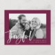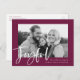 Wish friends and family a happy holiday with our Joyful Script holiday photo postcards. The modern holiday postcard features the word Joyful in a white, hand-lettered script overlay with your favourite photo framed in purple. Personalize the postcard by adding your names, return address & a custom greeting.