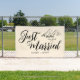 Modern Just Married Wedding Reception Banner is a rustic wedding party banner for your wedding reception party in Lake Tahoe or anywhere with mountains.