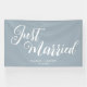 Modern Just Married Wedding Reception Banner is a simple boho blue wedding party banner for your wedding reception party.