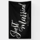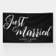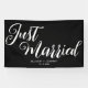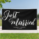 Modern Just Married Wedding Reception Banner is a simple boho black and white wedding party banner for your wedding reception party.
