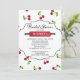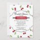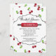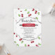 Modern kitchen bridal shower invitation featuring a red rolling pin set on a fancy frame with a white background. The background pattern features bunches of cherries. Visit our shop to view this contemporary, stylish and chic kitchen bridal shower invitation in a variety of colour choices.