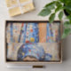 This vibrant portrait features a young woman with large brown eyes and a serene expression, dressed in a patterned blue head wrap and matching sleeveless dress. Her outfit is decorated with geometric shapes, circles, and shimmering gold accents, reminiscent of Gustav Klimt’s decorative style yet with a fresh, modern twist. The head wrap and statement earrings add a hint of bohemian flair, blending artistic sophistication with free spirited charm. The background continues the geometric motif creating a sense of depth and movement. Artwork similar to a stylized oil painting with mosaic and Art Deco influences……COLOR COMBINATIONS: Royal blue, crimson red, gold, cream, pink, beige……PERFECT FOR: Decoupage with an Art Deco or Klimt inspired theme, mixed media portrait projects, furniture upcycling with an artistic or boho twist, craft projects such as altered books and journals, and statement gift wrap...…... 🖤 NOTE 1. This design is available in two options: Left and Right. You can find them in the Collection shown below. If they don’t appear there, try searching for their unique identifiers: EC5L for the Left design and EC5R for the Right version….🖤 NOTE 2. The 18 lb tissue is a great choice if you like a little extra strength—it's easier to handle, resists tearing and allows for gentle repositioning. It’s also more opaque, making it perfect for darker surfaces. The 10 lb tissue is wonderfully lightweight and flexible giving you that smooth, blended finish. It’s ideal for layering on furniture or smaller projects so treat it gently and it will reward you with stunning results!.….🖤 NOTE 3. All items with this particular design share my unique identifying “Letter/s Number/s” label in the title for easy searching. …..🖤