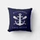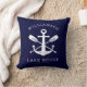Modern Lake House Family Name Nautical Navy Blue Throw Pillow