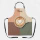 This personalized apron has a clean, top-down view of a mug filled with a meticulously crafted coffee beverage, featuring classic heart latte art in the foam.. The design is set against a modern, quartered background of warm, complementary colours. Ideal for baristas, coffee lovers, cafe owners, or anyone seeking stylish, contemporary kitchen and coffee station decor.