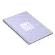 This modern, trendy notebook features a white geometric lattice all-over design with a periwinkle blue coloured background. In the centre is a framed monogram letter in the same periwinkle colour.