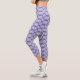 These modern, trendy leggings features a white geometric lattice all-over design with a periwinkle background.