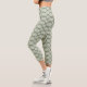 These modern, trendy leggings features a white geometric lattice all-over design with a sage green background.