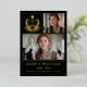 Celebrate your graduate in timeless style with this modern 3-photo Class of 2026 graduation announcement. Featuring a black layout, elegant gold foil typography on front and white and faux gold standard print typography on back, and a classic real gold foil laurel crest “Graduate” emblem, this customizable design beautifully showcases three senior portraits along with the graduate’s name, school, and heartfelt message.