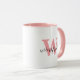 Modern monogram design in a bold serif typography is layered underneath a name in a handwritten-style script font. The same design automatically appears on both sides when you personalize it. You can change the pink colour if you like. Great gift for holidays, work coffee events, wedding parties and more!