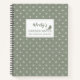 Modern stylish custom gardening journal with white leaf pattern on dusky green background. This easy to personalize spiral notebook features handwritten name and placeholders for your garden notebook text ideas, backside with bird logo and editable garden year. You can choose whether the inside pages should be white, lined or squared. You can collect all your garden ideas, notes about companion plants or plant wishes in it. This notebook is a smart gift idea for plant lovers, gardeners and green thumbs. Much joy with it and a successful gardening year © y.BEE PAPERIE