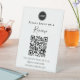 Modern Leave us a review QR code Pedestal Sign. Modern, elegant and simple business card to invite customers to leave you a review using a QR code to direct them to your social media, or website this vertical business card features a custom business logo and additional text for tagline, or contact information. The perfect strategy to build an audience, increase followers, grow your customer base and create community to generate quality advertisement.