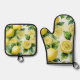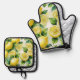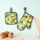 Modern lemon blue floral script bridal shower oven mitt & pot holder set
