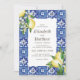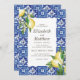 Modern Lemon Foliage Blue Mediterranean Wedding Invitation