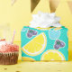 This repeating pattern features lemons, blueberries and many types of floral designs