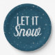 Modern let it snow blue with snowflakes paper plate