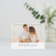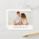Design features a beautiful calligraphy thin wedding script with your awesome photo that sets if off, perfectly. A splash of gold on back of card.