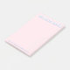 Sticky notes with your name in a bold white font with a light blue shadow on a pale pink background.