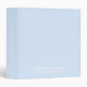 Minimalist light blue and white personalized custom family recipes cookbook. It can also be class name or project title, text, name or monogram solid plain colour simple elegant modern 3 ring binder.