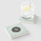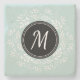 Beautiful stone coaster with mint blue floral wreath and personalized monogram.